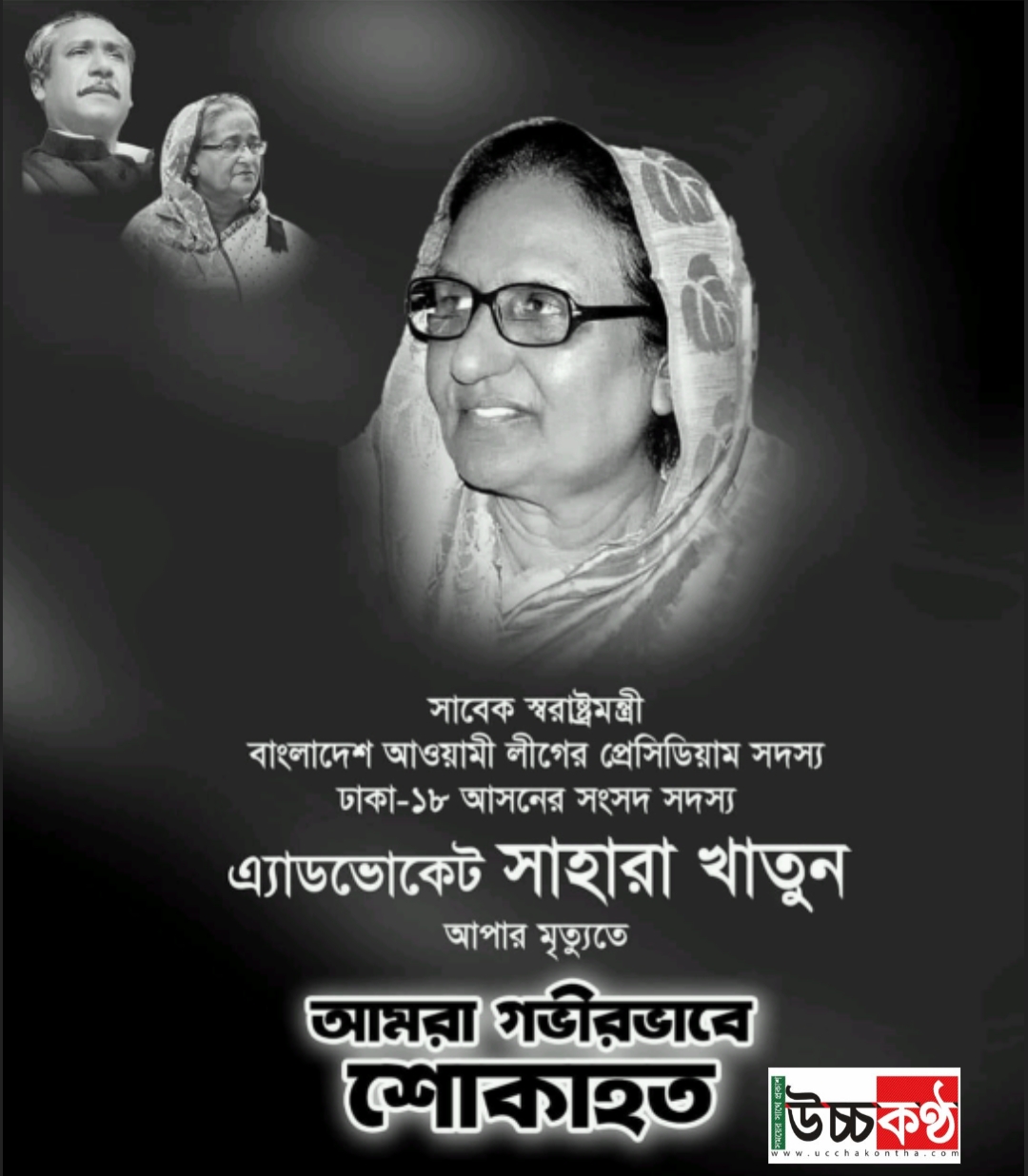 সাবেক স্বরাষ্ট্রমন্ত্রী ও বাংলাদেশ আওয়ামীলীগ এর সভাপতিমন্ডলীর সদস্য, এ্য৷ডভোকেট সাহারা খাতুন আর নেই।