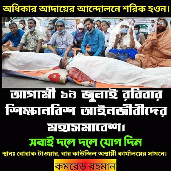সারা দেশ থেকে মহাসমাবেশে যোগদানের জন্য শিক্ষানবিশ আইনজীবীরা ছূঁটছেন ঢাকায়। আইনজীবী তালিকাভূক্তির প্রিলিমিনারী পাশকৃত (২০১৭ ও ২০২০) সালের রিটেন,ভাইভা পরীক্ষা চলমান বৈশ্বিক মহামারীর কারনে অনিশ্চিত হয়ে পড়েছে। ফলে শিক্ষানবিশ আইনজীবীদের ন্যায্য দাবী গেজেট প্রকাশের মাধ্যমে আইনজীবী হিসেবে অন্তর্ভূক্তির জন্য প্রধান সমন্বয়ক এ,কে মাহমুদ,সুমনা আক্তার লিলি ও আইনুল ইসলাম বিশাল গণের ডাকে আগামী ১৯ জুলাই রবিবার বার কাউন্সিলের সামনে শিক্ষানবিশ আইনজীবীদের সনদের দাবীতে মহাসমাবেশ। এ মহাসমাবেশে অংশ নিতে দেশের ৬৪ জেলা থেকে ৮১ টি বারের শিক্ষানবিশ আইনজীবীরা এ মহাসমাবেশে অংগ্রহণ করার জন্য ছুঁটে চলেছে।