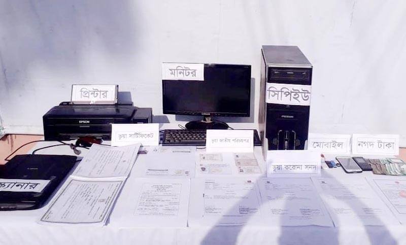 কুমিল্লার চান্দিনায় একটি কম্পিউটার দোকানে করোনাভাইরাসের জাল সনদ তৈরির অভিযোগে মোর্সেদ আলম (৩২) নামে এক ব্যক্তিকে আটক করেছে র্যাব-১১।