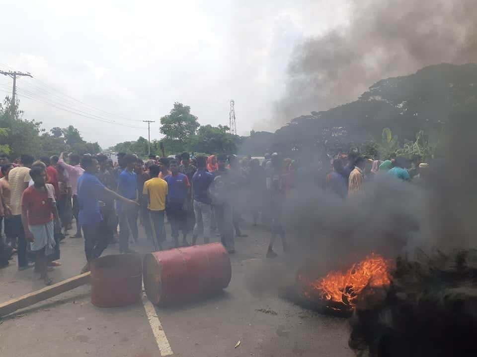 আজ সকাল ১০টায় কুমিল্লা দেবিদ্বার আতাপুর এলাকার ঢাকা চট্রগ্রাম মহাসড়কে আশা জুটমিল শ্রমিকদের বকেয়া বেতন ভাতা বন্ধ থাকার প্রতিবাদ এবং ঈদের আগেই দ্রুত বেতন ভাতা প্রদানের দাবীতে মহাসড়কে টায়ার জালিয়ে এবং অবস্থান নিয়ে রাস্তা অবরোধ করে রাখে।