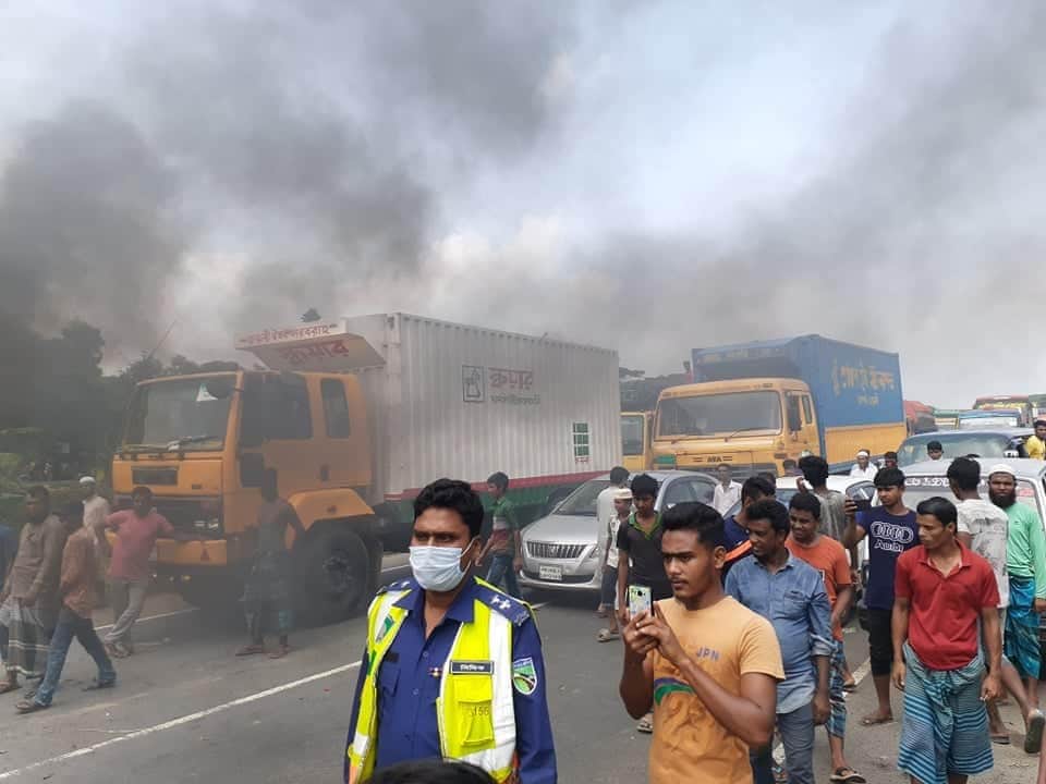 ফলে ভয়াবহ যানজট সৃষ্টি হয় মহাসড়কে উভয় পার্শ্বে।