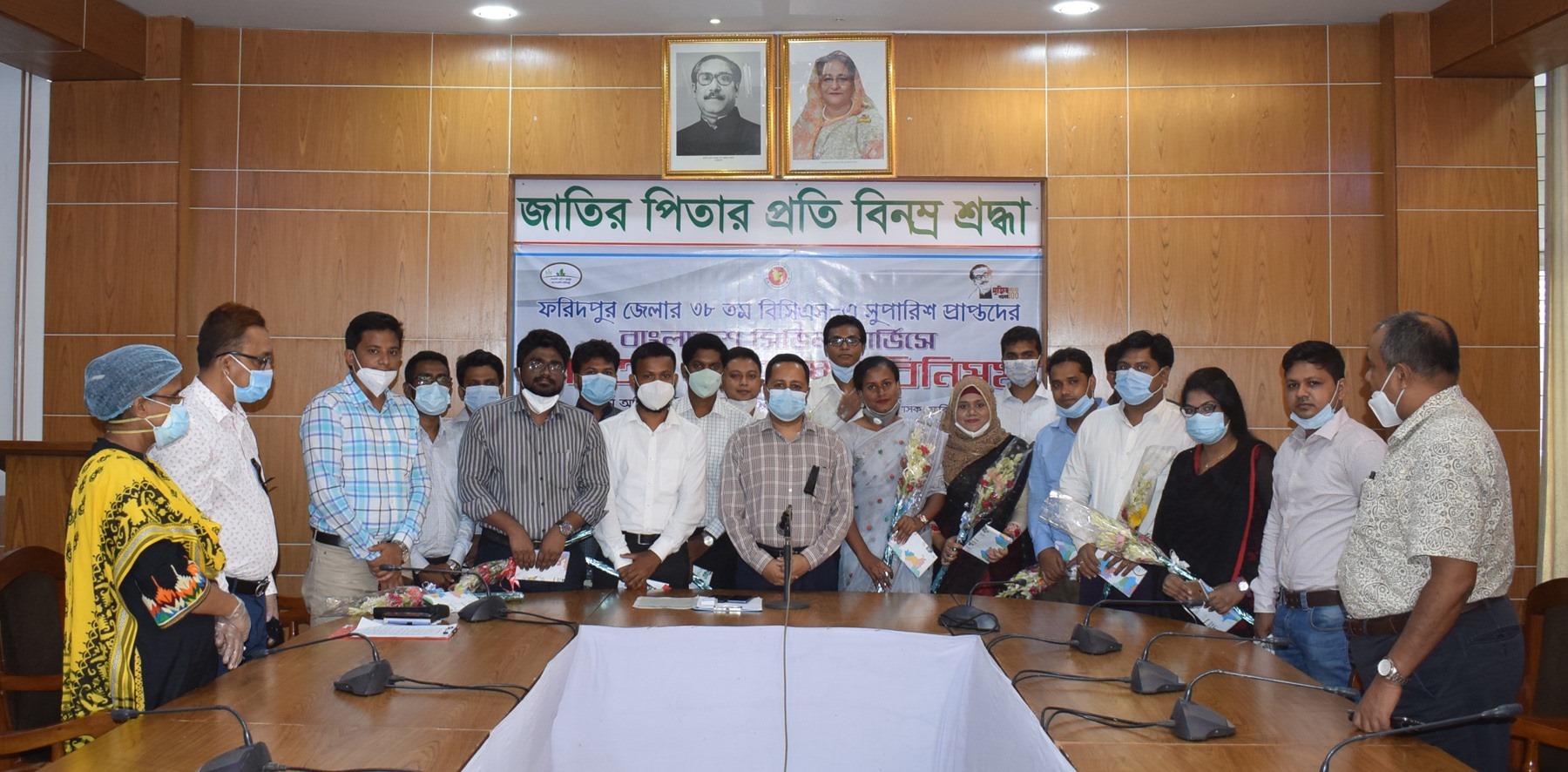 নবীন বিসিএস কর্মকর্তাদের মানবতার কল্যাণে কাজ করার আহবান জানিয়েছেন ফরিদপুরের জেলা প্রশাসক অতুল সরকার। আজ বুধবার, ০৫ আগস্ট ২০২০ খ্রিস্টাব্দ দুপুরে জেলা প্রশাসকের সম্মেলন কক্ষে জেলা প্রশাসন আয়োজিত ৩৮ তম বিসিএস এ ফরিদপুর জেলার সুপারিশ প্রাপ্তদের বাংলাদেশ সিভিল সার্ভিসে স্বাগতম ও শুভেচ্ছা বিনিময় অনুষ্ঠানে এ আহবান জানান। ফরিদপুর জেলা প্রশাসনের উদ্যোগে ৩৮ তম বিসিএস এ ফরিদপুর জেলার সুপারিশ প্রাপ্তদের এবারই প্রথম স্বাগতম ও শুভেচ্ছা বিনিময় অনুষ্ঠানের আয়োজন করা হয়। এ বছর ফরিদপুর জেলা হতে বিসিএস এ বিভিন্ন ক্যাডারে ৩৫ জনে কর্মকর্তা হিসেবে সুপারিশ প্রাপ্ত হয়েছেন।