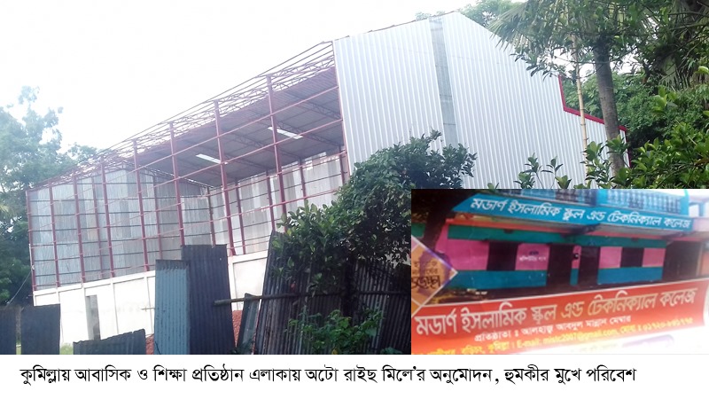 কুমিল্লা-মীরপুর সড়কের বুড়িচং উপজেলার ষোলনল ইউনিয়নের গাজীপুর মৌজাস্থিত খাড়াতাইয়া ইসলামিয়া ফাজিল মাদ্রাসা ও মর্ডান ইসলামিয়া স্কুল এন্ড টেকনিক্যাল কলেজের পাশে জনবহুল আবাসিক এলাকায় স্থাপিত হচ্ছে মেসার্স জাহানারা অটো রাইছ মেইল নামে একটি কারখানা। ইতোমধ্যে পরিবেশ অধিদপ্তরের ছাড়পত্র নিয়ে কারখানা নির্মান শুরু করেছে কর্তৃপক্ষ। এদিকে আবাসিক এলাকা ও একশত গজের মধ্যে দুটি শিক্ষা প্রতিষ্ঠান থাকার পরও পরিবেশ অধিদপ্তরের ছাড়পত্র নিয়ে প্রশ্ন তুলছেন এলাকাবাসী। কারখানাটি অন্যত্র স্থানান্তরের জন্য ১ শত ২৭ জন গ্রামবাসীর স্বাক্ষরিত অভিযোগ পত্র বিভিন্ন দপ্তরে জমা পরেছে। অভিযোগ পত্র ও কুমিল্লা পরিবেশ অধিদপ্তর সূত্রে জানা যায়, এ বছরের জানুয়ারী মাসে বুড়িচং উপজেলার খাড়াতাইয়া গাজীপুর গ্রামের মোঃ আবদুল মান্নান ওরফে মোনাফ মেম্বারের ছেলে বুড়িচং উপজেলা স্বেচ্ছাসেবক দলের সাংগঠনিক সম্পাদক মোঃ কামাল হোসেন মেসার্স জাহানারা অটো রাইছমিল স্থাপনের লক্ষে কুমিল্লা পরিবেশ অধিদপ্তরে একটি ছাড়পত্রের আবেদন জমা দেয়। আবেদনের এক মাসের মধ্যে পাশর্^বর্তী লোকজনের সাথে কথা না বলেই ছাড়পত্র দিয়ে দেয় পরিবেশ অধিদপ্তর। জুন মাসের প্রথম দিকে স্থাপনা নির্মাণের কাজ আরাম্ভ করলে বিষয়টি স্থানীয়দের নজড়ে আসে। মিলটি অন্যত্র স্থাপন করার জন্য প্রথমে গ্রামবাসী মিল মালিকের বরাবরে লিখিত ভাবে অনুরোধ জানান। মিল মালিক বিষয়টি কর্নপাত না কারায় গ্রামবাসীর পক্ষে মিল সংলগ্ন বাড়ীর হাজী সুরুজ মিয়া খন্দকারের ছেলে মোঃ জাকির হোসেন খন্দকার বিভিন্ন দপ্তরে অভিযোগ দায়ের করেন। তাঁর মধ্যে কুমিল্লা- ৫ আসনের সংসদ সদস্য এডভোকেট আবদুল মতিন খসরু, পরিবেশ ও জলবায়ূ পরিবর্তন মন্ত্রনালয়ের সচিব, কুমিল্লা জেলা প্রশাসক, কুমিল্লা পরিবেশ অধিদপ্তরের উপ-পরিচালক, বুড়িচং উপজেলা চেয়ারম্যান, উপজেলা নির্বাহী কর্মকর্তা, উপজেলা সহকারী কমিশনার (ভূমি), থানা অফিসার ইনচার্জ ও স্থানীয় প্রেসক্লাবে অভিযোগের অনুলিপি প্রদান করেন। অভিযোগের বিষয়টি স্বীকার করে কুমিল্লা পরিবেশ অধিদপ্তরের উপ-পরিচালক শওকত আরা কলি জানান, মিলটির ছাড়পত্রের জন্য আবেদনের পর ইন্সপেক্টর নজরুল ইসলাম ইসলাম তদন্ত করে রিপোর্ট জামা দেয়ার পর প্রাথমিক পর্যায়ে ছাড়পত্র দেয়া হয়। পরবর্তীতে অভিযোগ আসার পর আমি নিজে পরিদর্শন করে বুঝতে পারি, প্রথম রিপোর্টে কিছু ভূল ছিলো। তাই আমি পুনরায় উর্দ্ধতন কর্তৃপক্ষের বরাবরে নতুন করে সংশোধিত রিপোর্ট পেশ করেছি। জনবহুল ও শিক্ষা প্রতিষ্ঠান সংলগ্ন এলাকায় কখনো শিল্প কারখানার ছাড়পত্র দেয়া হবে না বলেও তিনি জানান। এ বিষয়ে বুড়িচং উপজেলা নির্বাহী কর্মকর্তা ইমরুল হাসান বলেন, মাননীয