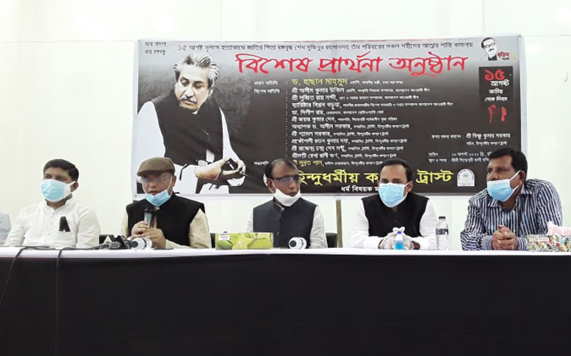 হিন্দুধর্মীয় কল্যাণ ট্রাস্ট্রের ভাইস প্রেসিডেন্ট সুব্রত কুমার পালের সভাপতিত্বে বাংলাদেশ আওয়ামী লীগের সংস্কৃতি বিষয়ক সম্পাদক অসীম কুমার উকিল, ত্রাণ ও সমাজ কল্যাণ সম্পাদক সুজিত রায় নন্দী, বাংলাদেশ হোমিওপ্যাথি বোর্ডের চেয়ারম্যান ডা. দিলীপ রায়, সিদ্ধেশরী সার্বজনীন পূজা পরিষদের সভাপতি জয়ন্ত কুমার দেব, হিন্দুধর্মীয় কল্যাণ ট্রাস্ট্রের ট্রাস্টি সভাপতি অধ্যাপক ড. অসীম সরকার, হিন্দুধর্মীয় কল্যাণ ট্রাস্ট ট্রাস্টি সভাপতি শ্যামল সরকার, প্রকৌশলী রতন কুমার দত্ত, হিন্দুধর্মীয় কল্যাণ ট্রাস্ট ট্রাস্টি রাজেন্দ্র চন্দ্র দেব মন্টু, শ্রীমতি রেখা রানী গুণ প্রমুখ সভায় যোগ দেন। এসময় জাতির পিতা বঙ্গবন্ধু শেখ মুজিবুর রহমান ও তার পরিবারের শহীদ সদস্যদের আত্মার শান্তির জন্য প্রার্থনা ও এ উপলক্ষে খাবার বিতরণ করা হয়।