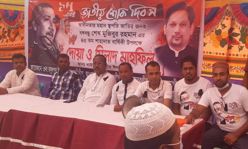 গত ১৫ই আগস্ট জাতীয় শোক দিবস উপলক্ষে কুমিল্লা জেলার দেবিদ্বার উপজেলার ৩নং রসুলপুর ইউনিয়ন খাইয়ার গ্রামে সর্বকালের সর্বশ্রেষ্ঠ বাঙালি জাতীর জনক বঙ্গবন্ধু শেখ মজিবুর রহমানের ৪৫ তম শাহাদাত বার্ষিকী উপলক্ষে, রসুলপুর ইউনিয়ন আওয়ামী যুবলীগের সভাপতি মোঃ নুরুল আলম সুমনের উদ্যোগে এবং ব্যাক্তিগত অর্থায়নে দোয়া ও মিলাদ মাহফিল এবং কাঙ্গালী ভোজের আয়োজন করা হয়েছেযা সুন্দর ও সফল ভাবে সম্পন্ন হয়েছে।