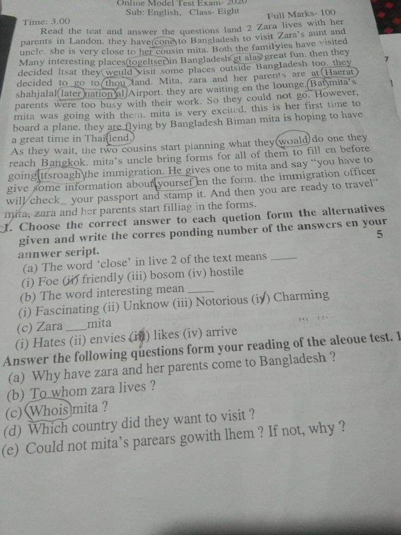 প্রতিটা প্রশ্নে কমপক্ষে ৩০/৪০ টা ভূল।এতে যেমন ছাএ/ছাএীদের বুজতে কষ্ট হচ্ছে সাথে সাথে শিক্ষকদের দ্বায়িত্বহীনতাকে দায়ি করছেন অনেক অভিভাবক।নাম প্রকাশ না করার শর্তে এক অভিভাবক অভিযোগ করেন তাঁর ছেলে নোয়াখালীর সেনবাগ উপজেলার একটি সনামধন্য বিদ্যালয়ের ৮ম শ্রেণির ছাএ।কিন্তু লকডাউনের শিথিলতার কারনে স্কুল কর্তৃপক্ষ ছাএদের /ছাএীদের বিদ্যালয় থেকে প্রশ্ন সংগ্রহ করার নোটিশ দেয়।ছাএ/ছাএীরা প্রশ্নগুলো যখন বাড়ীতে নিয়ে লিখতে বসে তখনই চোঁখে পড়ে ভূলেভরা পুরো প্রশ্ন।এতে যেমন শিক্ষার্থীদের বোধগম্য হচ্ছে না অপর দিকে অভিভাবকদেরও ব্যাপক ক্ষোভ প্রকাশ পেয়েছে।এই বিষয়ে উদ্ধর্তন শিক্ষা কর্মকর্তারদের দৃষ্টি আকর্ষন করা হচ্ছে।