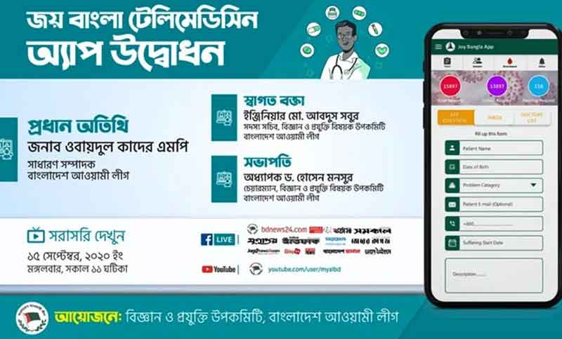 আওয়ামী লীগের বিজ্ঞান ও প্রযুক্তিবিষয়ক উপকমিটির উদ্যোগে ‘জয় বাংলা টেলিমেডিসিন অ্যাপ’ ডেভেলপ করা হয়েছে। এর মাধ্যমে বিশেষজ্ঞ চিকিৎসকদের কাছ থেকে বিনামূল্যে চিকিৎসা সেবা গ্রহণ করা যাবে।