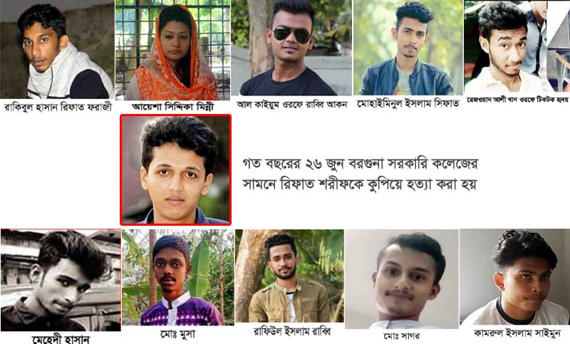 গত বছরের ২৬ জুন বরগুনা সরকারি কলেজের সামনে রিফাত হত্যাকাণ্ডের ঘটনা ঘটে। ঘটনার পরের দিন ১২ জনের নাম উল্লেখ করে অজ্ঞাত আরো ৫-৬ জনের বিরুদ্ধে হত্যা মামলা দায়ের করেন নিহত রিফাতের বাবা আবদুল হালিম দুলাল শরীফ। এরপর ওই বছরের ১ সেপ্টেম্বর প্রাপ্তবয়স্ক ও অপ্রাপ্তবয়স্ক; দু’ভাগে বিভক্ত করে ২৪ জনের বিরুদ্ধে আদালতে তদন্ত প্রতিবেদন দাখিল করে পুলিশ। এতে প্রাপ্তবয়স্ক ১০ জন এবং অপ্রাপ্তবয়স্ক ১৪ জনকে অভিযুক্ত করা হয়।