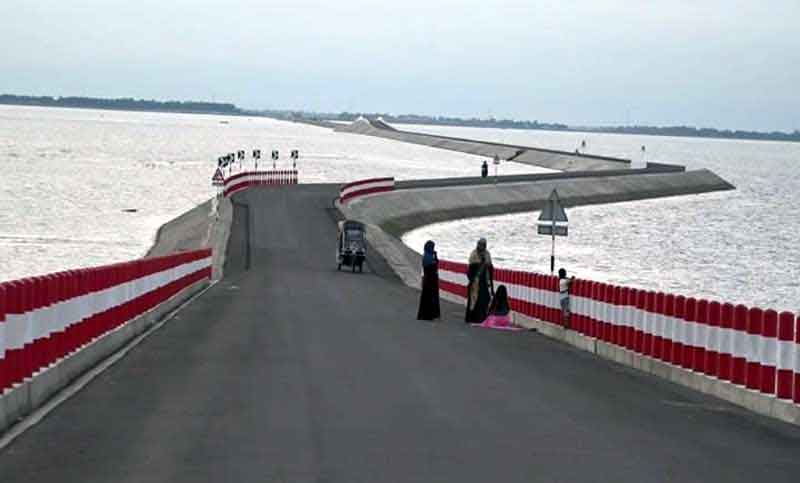 হাওরের বুকে দিগন্তে হারিয়ে যাওয়া পিচঢালা পথ। কেবল রাস্তা নয়, এ যেনো আরো বেশি কিছু। দ্বীপের মতো ভেসে থাকা গ্রাম, হিজল বন। তার পাশ দিয়ে যেন একেঁ বেঁকে চলে গেছে এক কালোরেখা। সেখানে ঢেউয়ের আছড়ে পড়ার শব্দ।