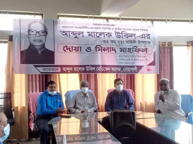 নোয়াখালীতে নানা কর্মসূচির মধ্যে দিয়ে মুক্তিযুদ্ধের অন্যতম সংগঠক, বাংলাদেশ আওয়ামী লীগের সাবেক সভাপতি, বাংলাদেশ জাতীয় সংসদের সাবেক স্পিকার ও দেশবরেণ্য আইনজীবি আবদুল মালেক উকিলের ৩৩তম মৃত্যুবার্ষিকী পালিত হয়েছে।