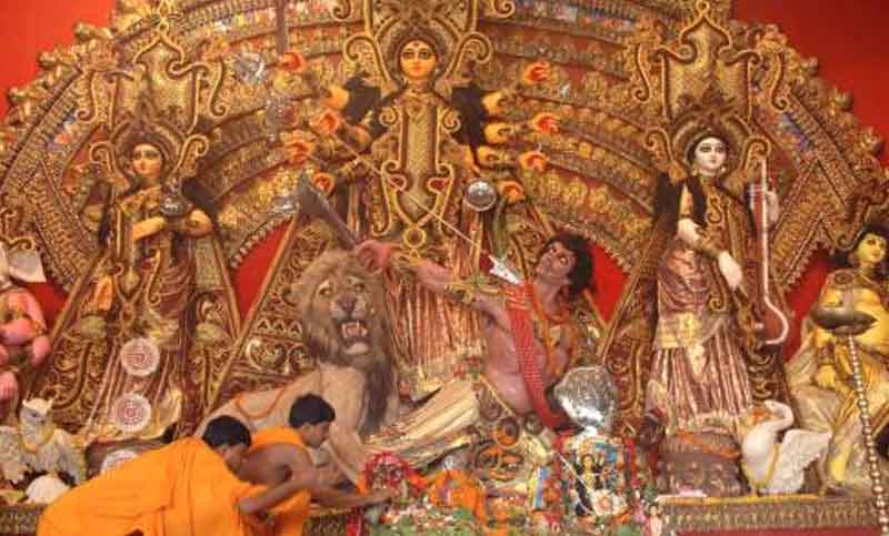 গতকাল শুক্রবার (২৩ অক্টোবর) সকালে নবপত্রিকা প্রবেশ ও সপ্তমীবিহিত পূজা অনুষ্ঠিত হয়। পূজা চলাকালে ঢাকের বোল, কাঁসর ঘণ্টা ও শাঁখের ধ্বনিতে মুখর হয়ে উঠলেও করোনাভাইরাস মহামারির কারণে এবারের আয়োজন ও পূজায় অংশগ্রহণ সীমিত ছিল। তার ওপর দিনভর প্রবল বর্ষণের কারণে রাজধানীর মণ্ডপগুলো ছিল অনেকটা ফাঁকা। পূজা শেষে স্বল্পসংখ্যক ভক্ত মণ্ডপে অঞ্জলি দিয়েছেন। তবে বাসায় থেকে অঞ্জলি দেওয়ার জন্য বিভিন্ন টেলিভিশন ও ফেসবুকে সরাসরি অঞ্জলি দেওয়ার ব্যবস্থা করা হয়। পূজামণ্ডপগুলো সন্ধ্যা আরতির পর বন্ধ হয়ে যায়।