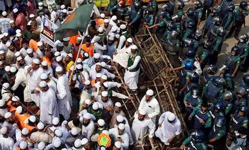 ফ্রান্সে প্রকাশ্যে বহুতল ভবনে রাসুল (সা.)-এর ব্যঙ্গ কার্টুন প্রকাশের প্রতিবাদে ইসলামী আন্দোলন বাংলাদেশ’র ফ্রান্স দূতাবাস ঘেরাও কর্মসূচিতে বাধা দিয়েছে পুলিশ।