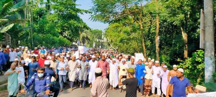 সম্প্রতি ফ্রান্সের সরকারি ভবনে মহানবী হযরত মুহাম্মদ (সাঃ) এর ১২টি ব্যঙ্গচিত্র কার্টুন প্রজেক্টর দিয়ে দেখানো এবং ফ্রান্সে রাষ্ট্রীয় পৃষ্ঠপোষকতায় রাসূলুল্লাহ (সাঃ)-এর ব্যঙ্গ কার্টুন প্রদর্শন এবং শিক্ষার্থীদের ক্লাসে বিতর্কিত ফরাসি ব্যঙ্গাত্মক ম্যাগাজিন শার্লি এবদো প্রকাশ করার কারনে সারা মুসলিম জনতার হৃদয়ে রক্তক্ষরণ হয় তারই ফলশ্রুতিতে অদ্যকাল জুমার নামাজ শেষে পিরোজপুর জেলার ভান্ডারিয়া উপজেলার সকল মুসলিম জনতা দল-মত নির্বিশেষে একত্রিত হয়ে রাস্তায় প্রতিবাদ মিছিল সহকারে নামেন, ভান্ডারিয়া বাজারের বড় মসজিদ এর সামনে থেকে মিছিলটি শুরু হয়ে পৌর শহরের বিভিন্ন রাস্তা প্রদক্ষিণ শেষে বাসস্ট্যান্ড কলেমা চত্বরে সকলে একত্রিত হয়, সেখানে মুসলিম জনতার পক্ষ থেকে ভাণ্ডারিয়ার বিভিন্ন মসজিদের ইমামরা বক্তৃতা প্রদান করেন, বক্তারা রাষ্ট্রীয় ভাবে ফ্রান্সের পন্য বয়কটের ঘোষনা দাবী করেছেন।