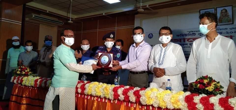 কমিউনিটি পুলিশিং কার্যক্রমে অনবদ্য স্বীকৃত স্বরূপ হবিগঞ্জ জেলায় শ্রেষ্ঠ কমিউনিটি পুলিশিং সদস্য নির্বাচিত হয়েছেন চুনারুঘাট পৌর আওয়ামীলীগের সভাপতি মোঃ আবু তাহের মিয়া মহলদার। শনিবার (৩১ অক্টোবর) সকালে হবিগঞ্জ পৌর টাউনহলে এক সভায় বাংলাদেশ পুলিশের আইজিপি ড. বেনজীর আহমেদ বিপিএম (বার) স্বাক্ষরিত সম্মাননা স্মারক ও সনদ মোঃ আবু তাহের মিয়া মহলদারের হাতে তুলে দেন হবিগঞ্জের পুলিশ সুুপার মোহাম্মদ উল্ল্যা বিপিএম, পিপিএম। এ সময় উপস্থিত ছিলেন- জেলা আওয়ামীলীগের সাধারণ সম্পাদক এড. আলমগীর চৌধুরী, হবিগঞ্জ পৌরসভার সাবেক মেয়র শহীদ উদ্দিন চৌধুরীসহ জেলা পুলিশ প্রশাসনের ঊর্ধ্বতন কর্মকর্তাবৃন্দ। উল্লেখ যে, মোঃ আবু তাহের মিয়া মহলদার চুনারুঘাট থানা কমিউনিটি পুলিশিং কমিটির সদস্য ও চুনারুঘাট পৌর শহরের পশ্চিম পাকুড়িয়া গ্রামের বাসিন্দা।