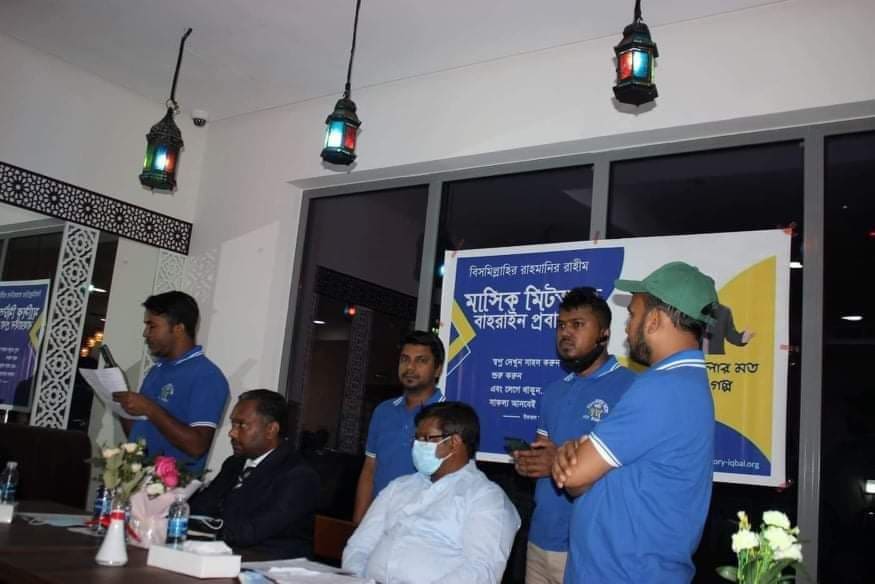 গত ৬ নভেম্বর রোজ শুক্রবার সন্ধ্যা ৭ঃ০০ টায় বাহারাইনের অভিজা ত এলাকা জুফেয়ার এর ৪ তারকা হোটেল দ্যা স্পট ক্যাপেতে জমকাল আয়োজনের মাধ্যমে অনুষ্ঠিত হয়ে গেল নিজের বলার মত একটা গল্প ফাউন্ডেশন এন আর বি বাহারাইন এর মাসিক মিটাপ এবং নব নিযুক্ত মডারেটর আবু তাহের ভাই এর সংবর্ধনা অনুষ্ঠান। আয়োজক কমিটি এবং সভার সভাপতি ও কান্ট্রি এম্বাসেডর ইয়াছিন আরাফাত ও নব নিযুক্ত মডারেটর আবু তাহের ভাই এর অনূরুধে উক্ত অনুষ্ঠান সঞ্চালনা ও উপস্থাপনায় ছিলাম আমি ইসমাইল পলাশ। অনুষ্ঠানে সভাপতিত্ব করেন কান্ট্রি এম্বাসেডর ইয়াছিন আরাফাত । অনলাইনে জুম এপ্স এর মাধ্যমে প্রধান অতিথি হিসাবে উপস্থিত ছিলেন নিজের বলার মত একটা গল্প ফাউন্ডেশন এর প্রতিষ্ঠাতা ও চেয়ারম্যান জনাব ইকবাল বাহার জাহিদ স্যার। সংবর্ধিত অতিথি হিসাবে উপস্থিত ছিলেন নব নিযুক্ত মডারেটর জনাব আবু তাহের। বিশেষ অতিথি হিসাবে উপস্থিত ছিলেন বাংলাদেশ সাংবাদিক ফোরাম বাহারাইন এর সাথে জনাব বশির আহাম্মেদ ( বাহারাইন প্রতিনিধি, এ টি এন বাংলা টেলিভিশন) সাংবাদিক ফোরাম বাহারাইন এর অর্থ সম্পাদক নাজির আহাম্মেদ ( বাহারাইন প্রতিনিধি একুশে টেলিভিশন) সাংবাদিক ফোরাম বাহারাইন এর ধর্ম বিষয়ক সম্পাদক মোফাজ্জল হোসেন লিটন (বাহারাইন প্রতিনিধি দৈনিক সংগ্রাম) মানবাধিকার ক্রাইম নিউজ প্রতিনিধি শাহিন শিকদার। বিশিষ্ট ব্যাবসায়ী মশিউর রহমান (এম ডি কাপকো কন্সট্রাকশান কোম্পানি)। অনলাইনে জুম এপ্স এর মাধ্যমে নিজের বলার মত একটা গল্প ফাউন্ডেশন এর পৃথিবীর ভিবিন্ন দেশ থেকে কোর ভলন্টিয়ার, কান্ট্রি এম্বাসেডর, কমিউনিটি ভলন্টিয়ার গন অনলাইনে যুক্ত ছিলেন। এছাড়া ও উপস্থিত ছিলেন l