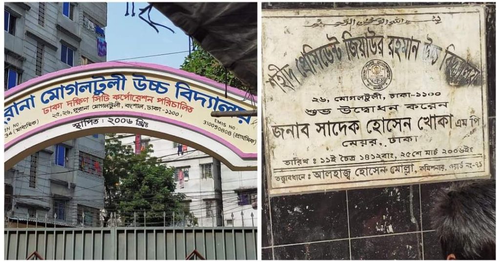 পথসভায় ইঞ্জিনিয়ার ইশরাক হোসেন বলেন, ‘আমার বাবা অবিভক্ত ঢাকার শেষ মেয়র প্রয়াত সাদেক হোসেন খোকা ২০০৬ সালের ২৫ মার্চ জিয়াউর রহমানের নামে এ বিদ্যালয়টি প্রতিষ্ঠা করেছিলেন। কিন্তু রাজনৈতিক উদ্দেশ্যে সম্প্রতি বিদ্যালয়ের নাম পরিবর্তন করে মোগলটুলি উচ্চ বিদ্যালয় করা হয়েছে।’ এলাকাবাসী বা কারো চাহিদা না থাকলেও সিটি করপোরেশন থেকে বিদ্যালয়টির নাম পরিবর্তন করায় ক্ষোভ জানান তিনি।