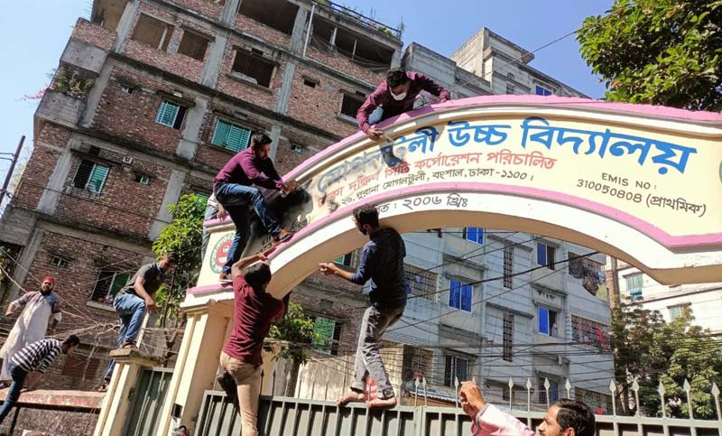 আজ রবিবার (২৯ নভেম্বর) সকালে বংশাল মোড় থেকে মিছিল শুরু হয়। সেখান থেকে মোগলটুলী এলাকায় বিদ্যালয়টির সামনে যান দলের নেতাকর্মীরা। এসময় সেখানেই বিক্ষোভ করতে থাকেন তাঁরা। বিক্ষুব্ধ নেতাকর্মীরা বিদ্যালয়ের পরিবর্তিত নামফলক মুছে দেন। এ সময় সেখান থেকে নেতাকর্মীদের সরিয়ে নিয়ে যান বিএনপি নেতা হাবিব উন নবী খান সোহেল ও ইঞ্জিনিয়ার ইশরাক হোসেন। পরে নবাবপুর সড়কে পথসভা করেন তাঁরা।