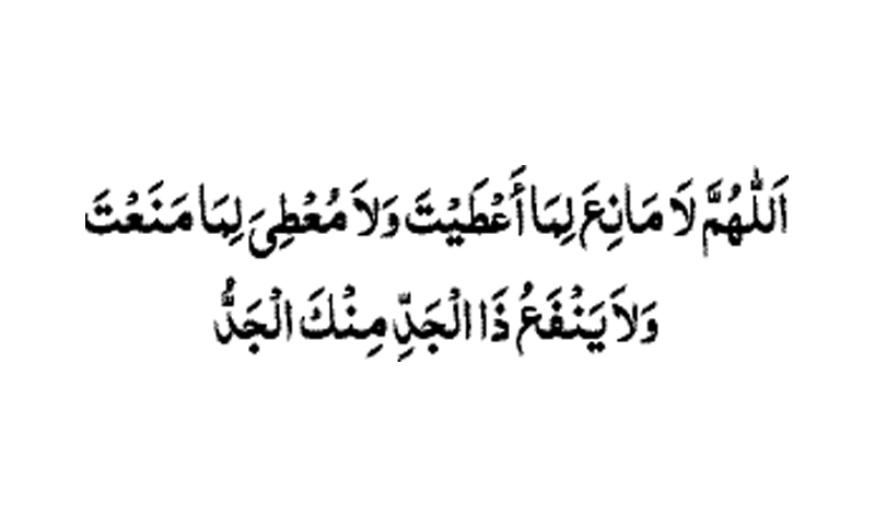 উচ্চারণ : আল্লাহুম্মা লা মানি‘আ লিমা আ‘ত্বইতা, ওয়ালা মু‘ত্বিয়া লিমা মানা‘তা, ওয়ালা ইয়ানফা‘উ জালজাদ্দি মিনকাল জাদ্দু।
