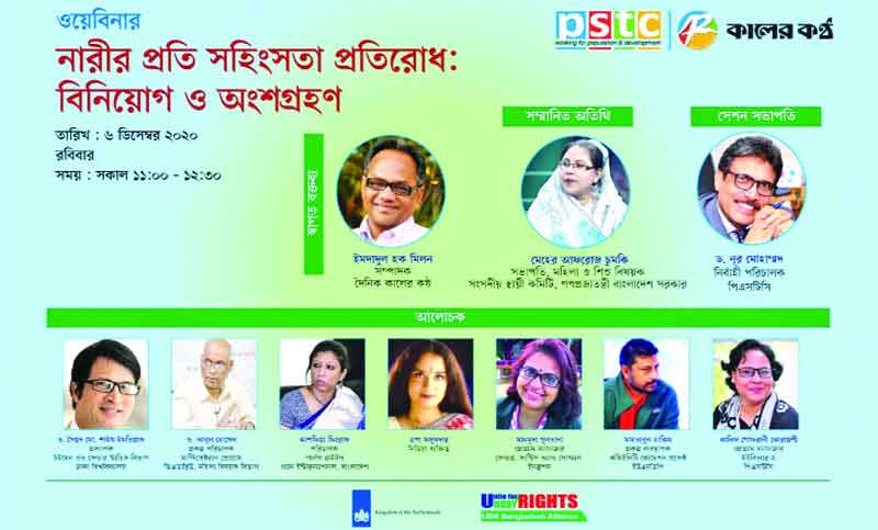 কালের কণ্ঠ ও পিএসটিসির যৌথ উদ্যোগে ‘নারীর প্রতি সহিংসতা প্রতিরোধ : বিনিয়োগ ও অংশগ্রহণ’ শীর্ষক ওয়েবিনারের আয়োজন করা হয়েছে।