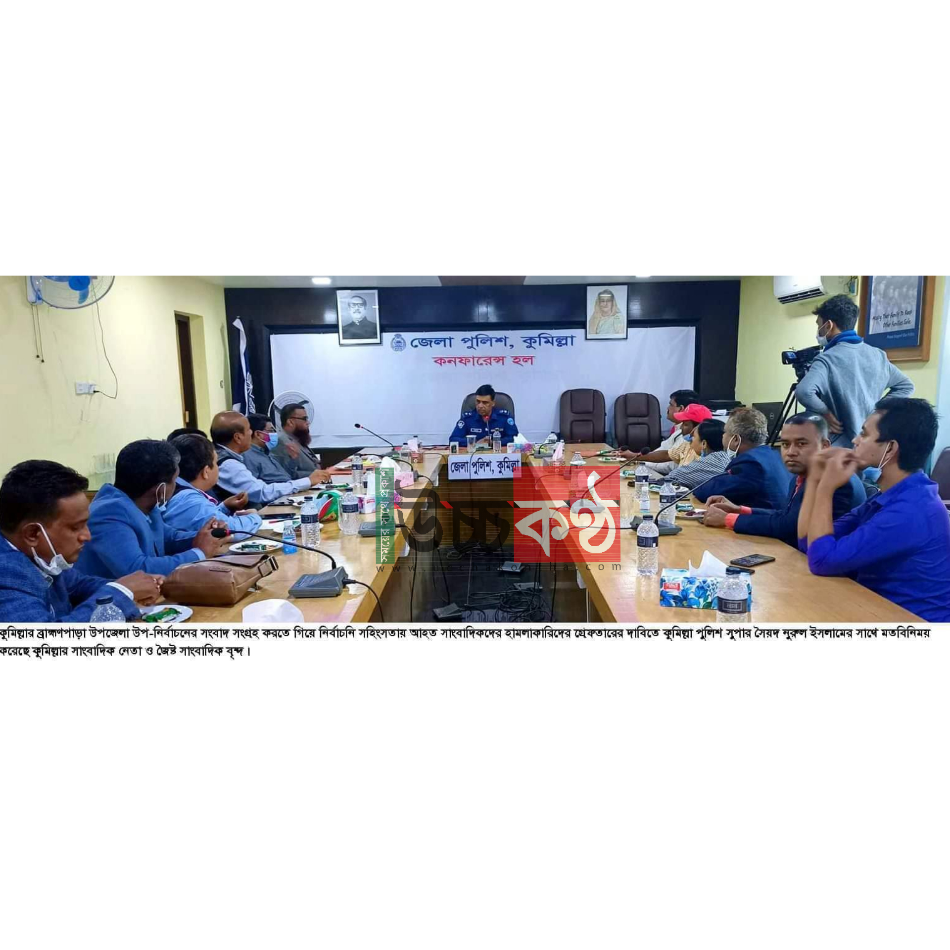 কুমিল্লার ব্রাহ্মণপাড়া উপজেলা উপ-নির্বাচনের সংবাদ সংগ্রহ করতে গিয়ে নির্বাচনি সহিংসতায় আহত সাংবাদিকের উপর হামলাকারিদের গ্রেফতারের দাবিতে কুমিল্লা পুলিশ সুপার সৈয়দ নুরুল ইসলামের সাথে মতবিনিময় করেছে কুমিল্লার সাংবাদিক নেতা ও জৈষ্ট সাংবাদিক বৃন্দ।