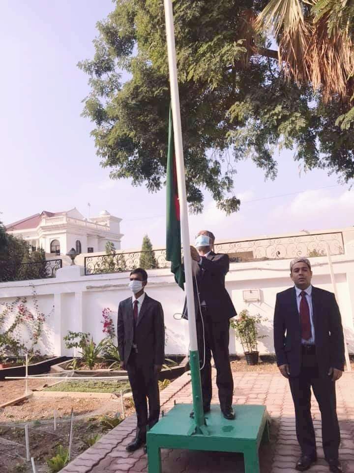মান্যবর রাষ্ট্রদূত ড. মুহাম্মাদ নজরুল ইসলাম এর পতাকা উত্তলনের মধ্যে দিয়ে অনুষ্ঠানের সূচনা করেন।