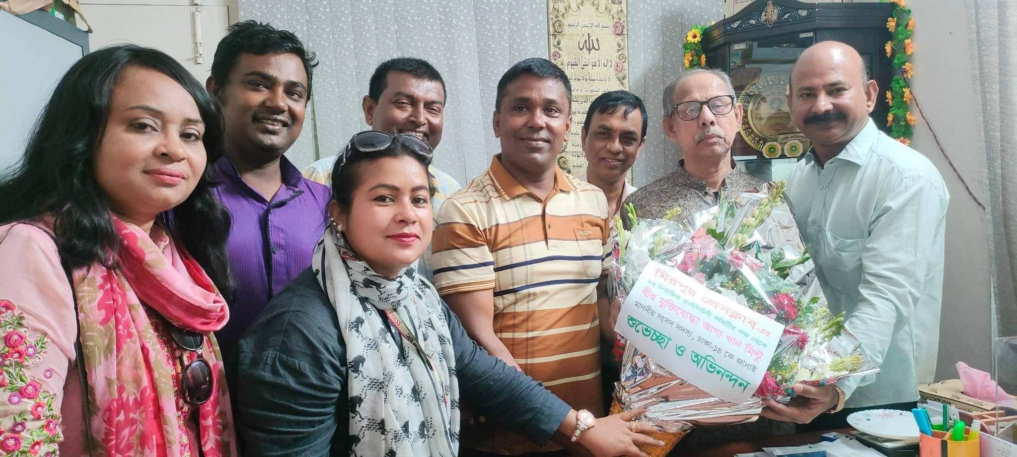 নিউজ ডেক্স: আজ রোজ শনিবার, ১২ ই নভেম্বর ২০২২ ইং তারিখে মিরপুর প্রেসক্লাবের নবনির্বাচিত কার্যনির্বাহী কমিটির সভাপতি মোঃ আমিনুল ইসলাম রিপন, সাধারণ সম্পাদক মোহাম্মদ মাহবুব উদ্দিন এর নেতৃত্বে মিরপুর প্রেসক্লাবের নব নির্বাচিত কার্যনির্বাহী কমিটির পক্ষ থেকে মিরপুর প্রেসক্লাবের উপদেষ্টা বীর মুক্তিযোদ্ধা মাননীয় সংসদ সদস্য জনাব আগা খান মিন্টু মহোদয় কে ফুলের শুভেচ্ছা জানানো হয়।