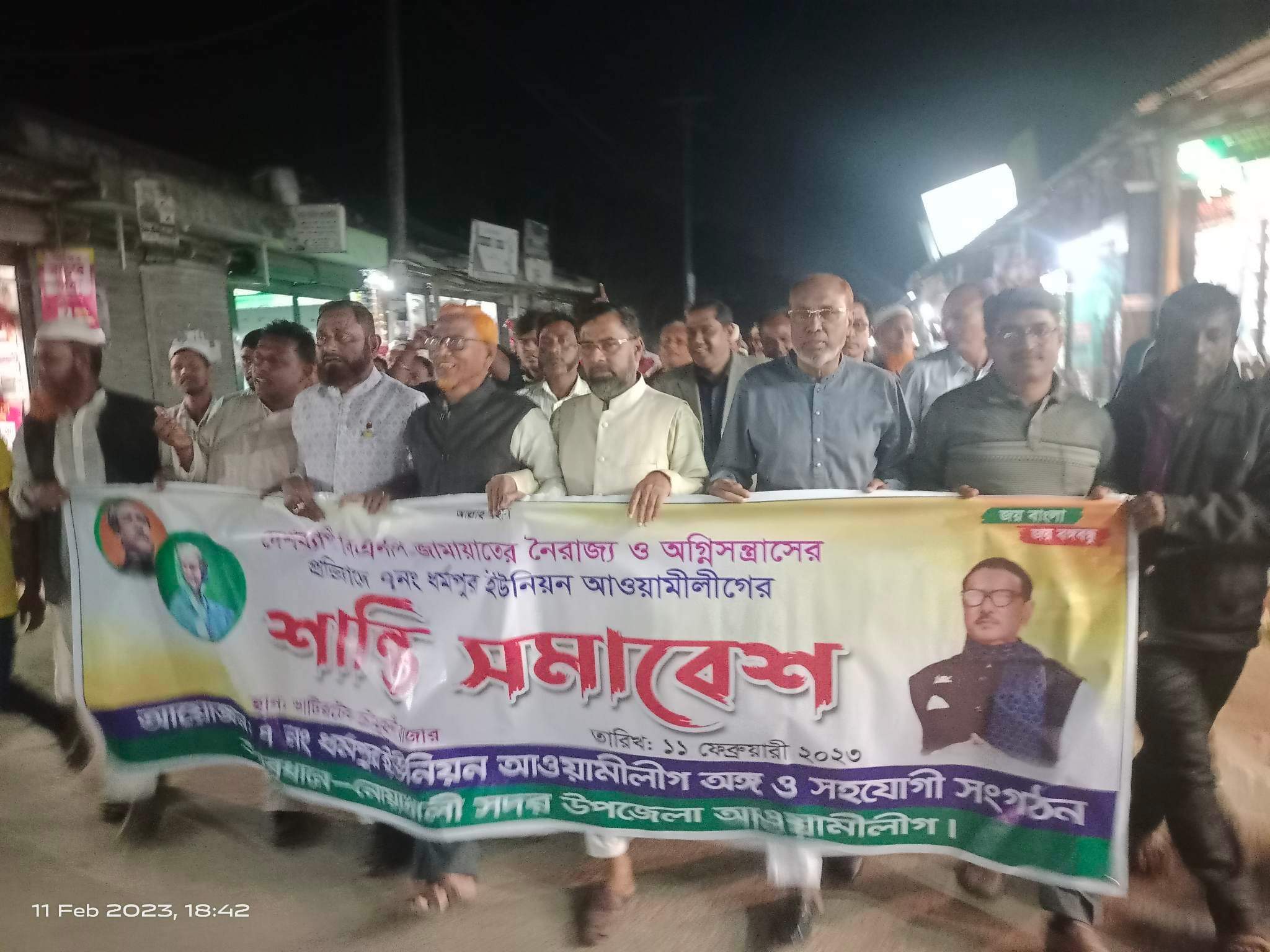 নোয়াখালী সদর উপজেলার বিভিন্ন ইউনিয়নে জামাত-বিএনপির নৈরাজ্য ও অগ্নি সন্ত্রাসের প্রতিবাদে শান্তি সভা অনুষ্ঠিত হয়েছে।