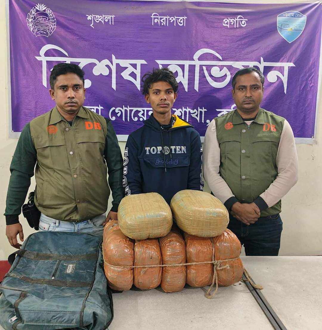 কুমিল্লা ডিবি পুলিশের একটি টিম কুমিল্লা জেলায় বিশেষ অভিযান পরিচালনা করে গত ১৮/০১/২৪ইং তারিখ রাত ৯:১০ ঘটিকায়। উক্ত অভিযানে গোপন সংবাদের ভিত্তিতে কুমিল্লা কোতয়ালী মডেল থানার অন্তর্গত ০৬নং জগন্নাথপুর ইউনিয়নের বালুতোপা-টু-বিবির বাজার বন্দরগামী রোডের দারুত তাহজিব স্কুল এন্ড মাদ্রাসার সামনে পাকা রাস্তার উপর সন্দেহ ভাজন এক ব্যক্তিকে তল্লাশি করা হয়। এসময় উক্ত ব্যক্তির নিকট ১৪ কেজি গাঁজাসহ একটি ব্যাগ পাওয়া যায়। প্রাথমিক জিজ্ঞাসাবাদে জানা যায় উক্ত ব্যক্তি পেশাদার মাদক ব্যবসায়ী। তার নাম মোঃ পারভেজ মিয়া (২০), পিতা-মুনান হোসেন, মাতা-পারভিন বেগম, গ্রাম-ভাটপাড়া (মজুমদার বাড়ী), থানা-সদর দক্ষিণ মডেল, জেলা-কুমিল্লা। পরে তাকে আটক করে কোতোয়ালি মডেল থানায় প্রেরণ করা হয় এবং তার নামে নিয়ন্ত্রণ মাদকদ্রব্য নিয়ন্ত্রণ আইনে মামলা রজ্জু করা হয়।
