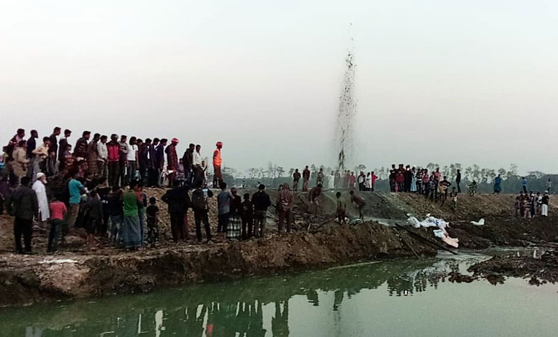 এ সময় ফায়ার সার্ভিসের কর্মীরা ছুটে আসে এবং সন্ধ্যা পর্যন্ত এ অবস্থা অব্যাহত ছিল। তবে রাত যত বেশি হবে গ্যাসের বেগও কমে আসবে বলে তিনি আশাবাদী। থানার ভারপ্রাপ্ত কর্মকর্তা দেলোয়ার হুসেন বলেন, মৎস্য ঘেরে টিউবওয়েলের পাইপ বসানোর সময় পানি ও বালু মিশ্রিত গ্যাস নিয়ন্ত্রণে বালি ও মাটির বস্তা দিয়ে বন্ধের জন্য চেষ্টা চালানো হয়েছে।