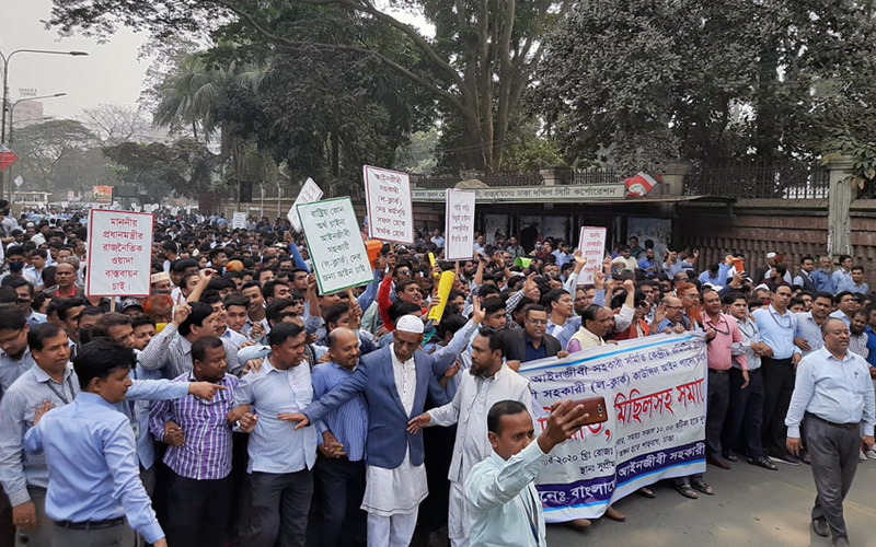 আইনজীবী সহকারী কাউন্সিল (ল-ক্ল্যার্ক) নামের আইন পাশের দাবিতে মঙ্গলবার বিক্ষোভ কর্মসূচি পালন করেছেন আইনজীবী সহকারীরা। আজ সকালে রাজধানীতে বিক্ষোভ মিছিল করেন তারা। সুপ্রিম কোর্ট আইনজীবী সহকারী সমিতি, ঢাকা আইনজীবী সহকারী সমিতি ও ঢাকা মেট্রোপলিটন আইনজীবী সহকারী সমিতির কয়েক হাজার সদস্য মিছিলে অংশ নেন। সুপ্রিম কোর্ট প্রাঙ্গন থেকে মিছিলটি শুরু হয়ে মাজারগেইট, কদম ফোয়ার, মৎসভবন, শাহবাগ হয়ে পুনরায় একই পথ হয়ে সুপ্রিম কোর্টে শেষ হয়। মিছিলটি শাহবাগ পৌঁছলে তারা সেখানে প্রায় দুই ঘণ্টা অবস্থান কর্মসূচি পালন করেন। সেখানে সংক্ষিপ্ত সমাবেশ করা হয়।