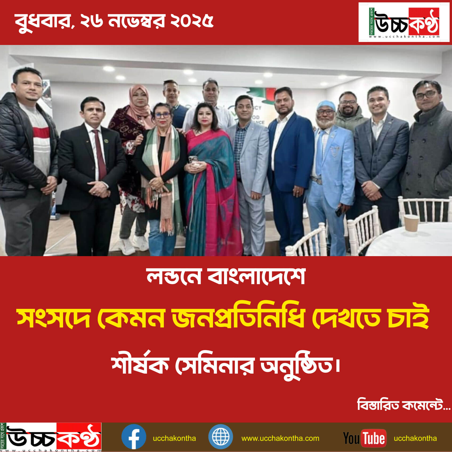 লন্ডনে বাংলাদেশে ‘সংসদে কেমন জনপ্রতিনিধি দেখতে চাই’ শীর্ষক সেমিনার অনুষ্ঠিত।